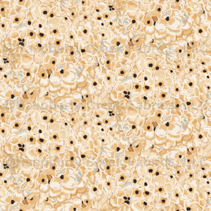 Abstract hydrangea flowers in neutral colors with a touch of green