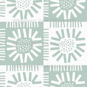Modern bold stylized green and white sunflower check tile design with bold lines.