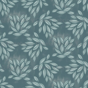 Painterly and textured botanical leaves in a bush shape on a textured background in teal.