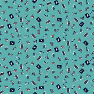 An Adventure in Birding Collection-Nature Walk-Ditsy Pattern-Small-less dense-Solid Galaxy Turquoise Blue Mid-Century Blues Palette