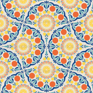 Enjoy jazz age glamour in our colorful Oranges and Lemons dot mandala in an art deco fans pattern using colors from our Aegean Summer palette.