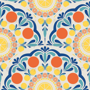 Aegean Summer Oranges And Lemons Art Deco Scallop
