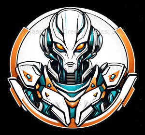 Use image as a PNG with transparency to crop empty surrounding areas for the logo or emblem. Introducing a cyberpunk-inspired emblem logo featuring an alien robot creature. Embrace the future with this futuristic and captivating design.
