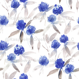 alpine clover flowers - watercolor wildflowers - blue florals with taupe