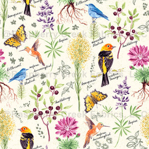 Alpine Flora and Fauna (240102) from the Glacier National Park Collection / Birds, hummingbirds, flowers, huckleberries, butterflies, and blue birds / Spring in the Mountains