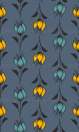 Coordinating ditsy stripe yellow and aqua on denim blue
