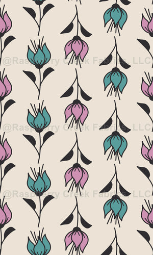 Coordinating ditsy stripe in pink and turquoise on cream