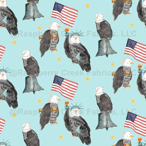 american, USA, United States, eagles, bald eagle, kids, freedom, whimsical, blue, flags, patriotic, 4th of July, independence day, holiday, boys, girls, justice, cartoon, Statue of Liberty, liberty bell