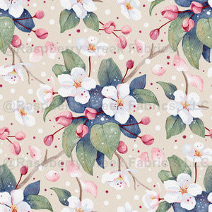 A pretty floral pattern with beautiful apple blossom, painted digitally in a realistic watercolor style.