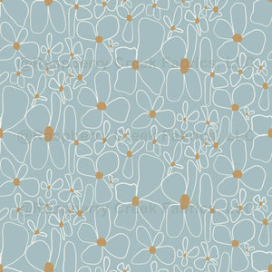 Soft Aqua Florals: Delicate blooms & dots fabric, perfect for serene home decor.