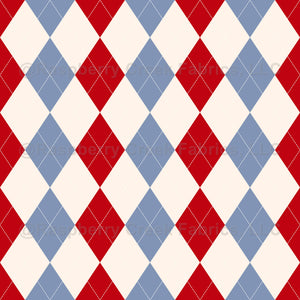Argyle Pattern, White Red Blue, White Stitching