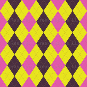 Argyle Pattern, Yellow Purple Pink, Brown Stitching