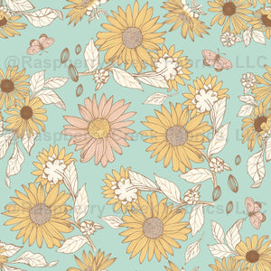 Aris's Garden Mermaid - Summer, Fall Sunflowers Aqua and Orange