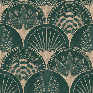 Art Deco Golden Fans - Green and gold scalloped geometric motifs