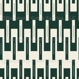 Art Deco vertical abstract book pattern in dark forest emerald green and warm ivory beige, perfect for minimalist quilts, decor, and bookish projects.