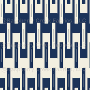 Art Deco vertical abstract book pattern in navy blue and ivory beige, perfect for minimalist quilts, decor, and bookish projects.