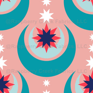 Art Deco moon and stars - pink and teal wallpaper