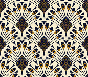 art deco peacock wallpaper deep navy blue and gold by denesannadesign