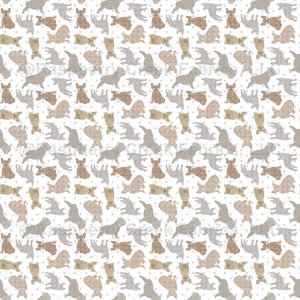 Lovable French Bulldogs on a white Background and gray and tan polka dots.