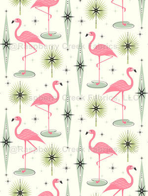 Atomic Flamingo Oasis Retro Pink Flamingos Diamonds and Starbursts on Ivory ©studioxtine