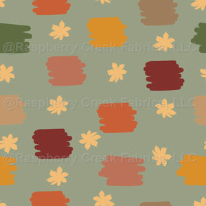 Autumn Burst Paintbrush Flowers Light Green; Fall Paintbrush Strokes on Light Green with flowers; Gold, Red, and Orange; fall tones, autumn tones, light green background