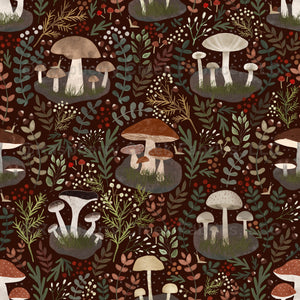 Autumn Forest Finds - Fall Fungi and Mushrooms in dark brown