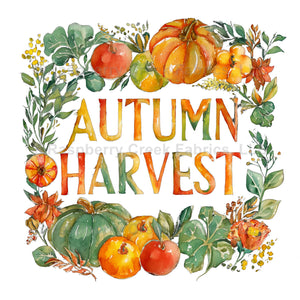 Autumn Harvest Letters With Frame Of Foliage, Pumpkins, Apples, Flowers And Leaves Panel For Tshirts