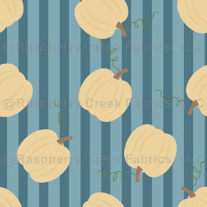 Autumn Harvest White Pumpkins; White/Beige pumpkins on blue striped background