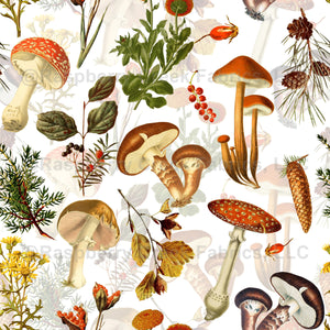 Autumn Harvest- Woodland Mushrooms Blossoms Twigs Dance white