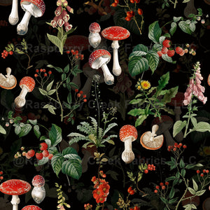 Autumn Harvest- Woodland Mushrooms Flowers Berries Dance Black