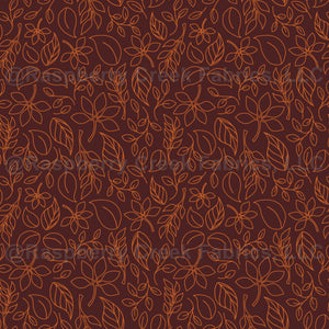 Hand-drawn leaf motifs in solid line outlines, scattered on a solid background, in beautiful fall colors.