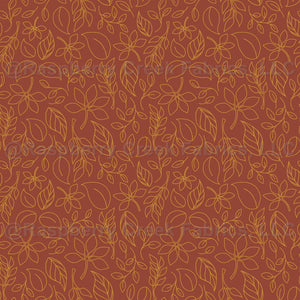 Hand-drawn leaf motifs in solid line outlines, scattered on a solid background, in beautiful fall colors.