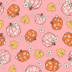 Autumn Pumpkins Daisy Flowers and Leaves on Harvest Pink