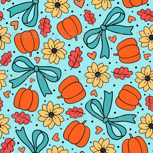 Autumn Splendor Pumpkins Bows Sunflowers in Blue