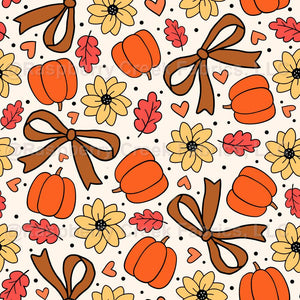 Autumn Splendor Pumpkins Bows Sunflowers Ivory