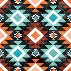 Aztec Geometric in Shades of Aqua Blue and Orange on Black