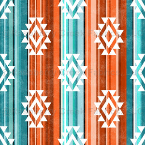 Aztec Serape Stripes in Shades of Aqua Blue and Orange
