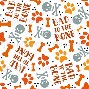 Bad to The Bone Dog Paw Prints and Skulls on White