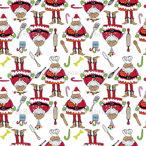 Santa is busy baking sweet treats in the kitchen with utensils. Part of the Baking Santa Collection.