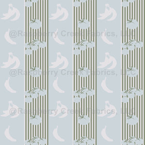 A bold vertical stripe inspired by vintage produce crates. Alternating stripes of bananas and tomatoes create playful rhythm while maintaining a timeless market aesthetic.