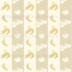 A bold vertical stripe inspired by vintage produce crates. Alternating stripes of bananas and tomatoes create playful rhythm while maintaining a timeless market aesthetic.