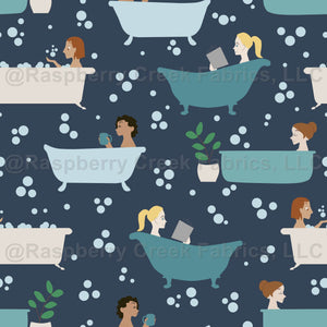 Several ladies enjoying some peaceful down time in their bathtubs.