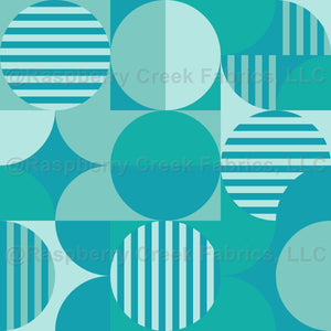 Bauhaus Style Geometric, Circles, Stripes, Turquoise, Lagoon, Seafoam, Sea Glass, Aqua Blue
