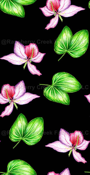This pattern was inspired by the play of light on soft petals and the contrast of vibrant green leaves. It evokes the atmosphere of exotic gardens where nature blends strength with grace.
