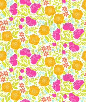 Beautiful Peonies and Rose Garden Bright Neon Colors bydenesannadesign