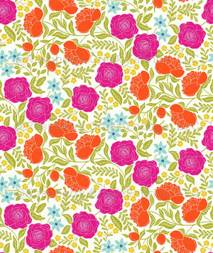 Beautiful Peonies and Rose Garden Bright Vibrant Colors onWhite by denesannadesign