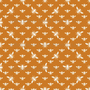 Charming bee motif seamless pattern, in honey gold ideal for nature-themed decor and textiles.