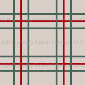 This festive plaid features classic Christmas red and green stripes layered over a cozy beige background. Designed to coordinate seamlessly with other prints in the Mr. & Mrs. Claus collection, it adds timeless charm to holiday sewing projects. Ideal for pajamas, table linens, children’s clothing, and holiday decor.