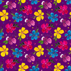 Jewel-tone boho watercolor floral in ruby red, sapphire blue, citrine yellow, and amethyst violet flowers with green leaves on violet. Fabric, home decor,