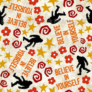 Believe in Yourself Bigfoot in Red Orange Yellow